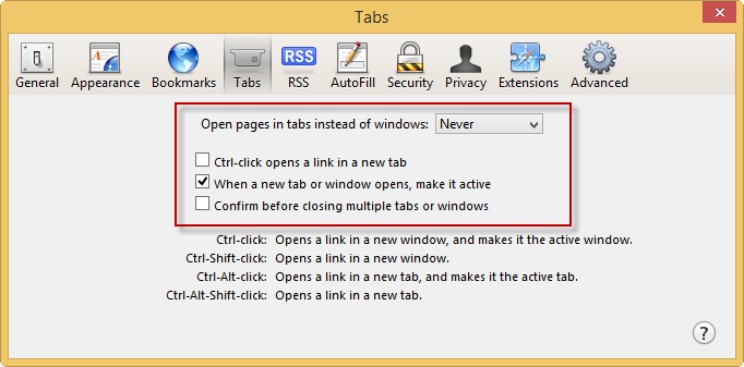 1. Click on browser settings and press on Options.2. Scroll down to Tabs section and check Open new windows in a new tab instead.