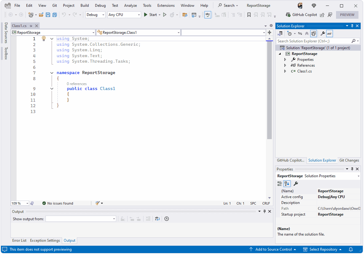 - Create another Class library (.NET Framework) project and add a Report class using the Item Templates in Visual Studio. Add a reference to the Class Library project or to the dll that contains the data source definition.